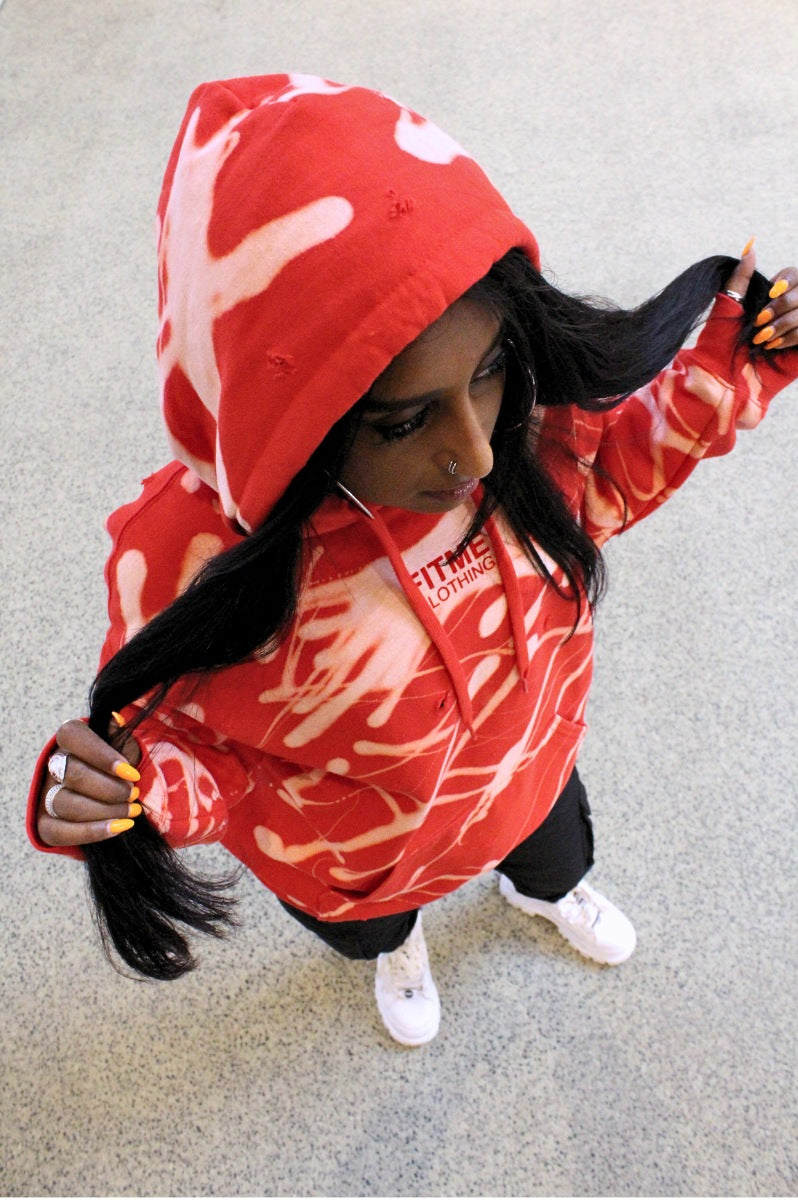 'FLARE' Red Distressed Unisex Hoodie